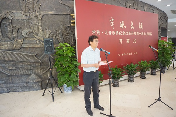 丹青吐彩歌盛世,翰墨飘香谱新篇。6月6日上午,“虞风娄韵——常熟、太仓政协纪念改革开放40周年书画展”在太仓博物馆拉开帷幕。常熟市委副书记、市政协主席韩卫兵,我市市政协主席邱震德出席开幕式。常熟市政协副主席殷丽萍,我市市政协副主席王国其,秘书长陆静波,市政协老领导张祖勤、张业希、邢少兰等参加活动。